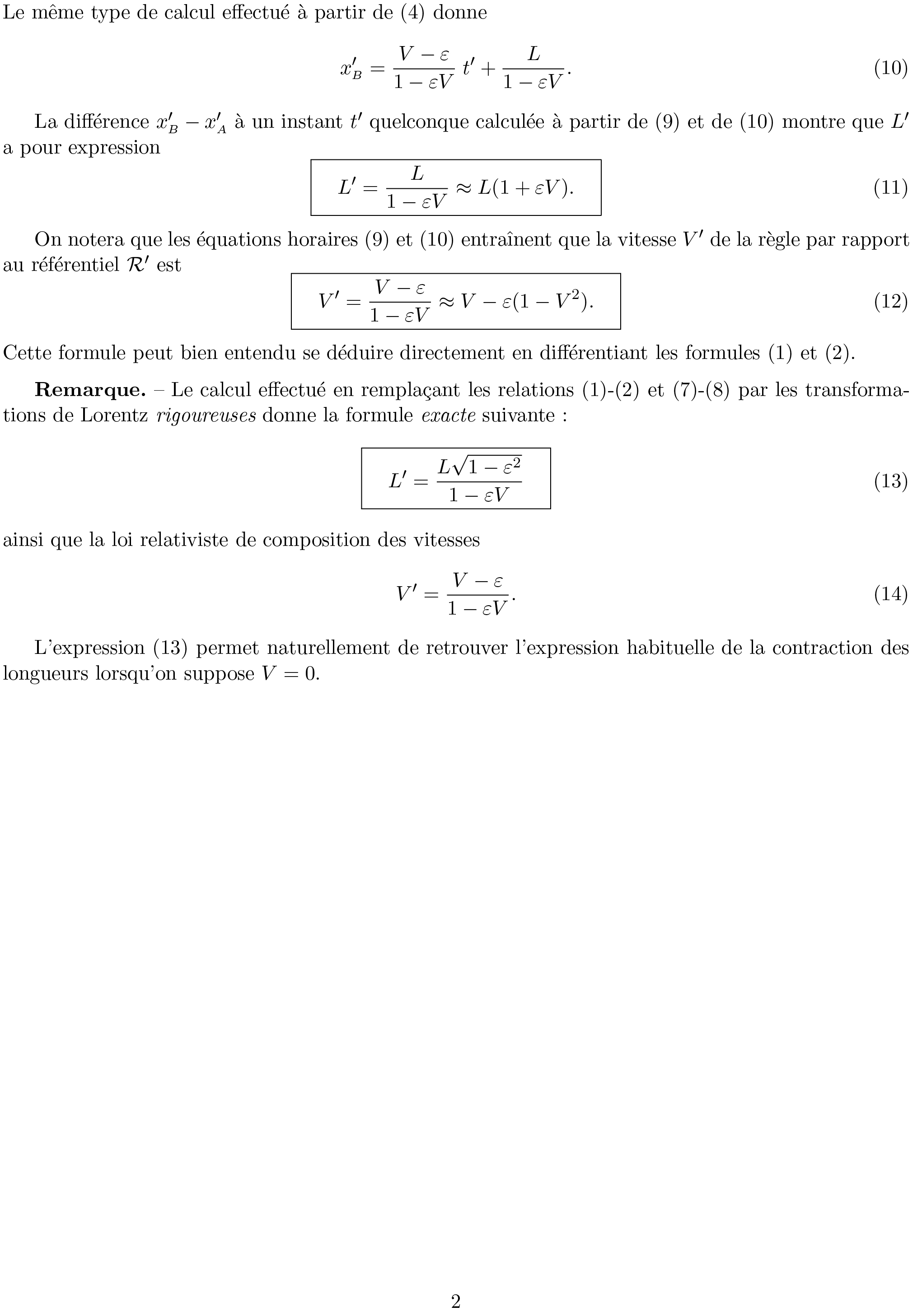 Pour obtenir simplement l’expression (7) du temps local de 1895, partons de l’équation (6)